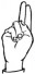 На ћирилици написано СИМОНА ГРУБНИЋ састоји се из 13 слова [?]. Исписано ћириличном једноручном азбуком за глувонеме: